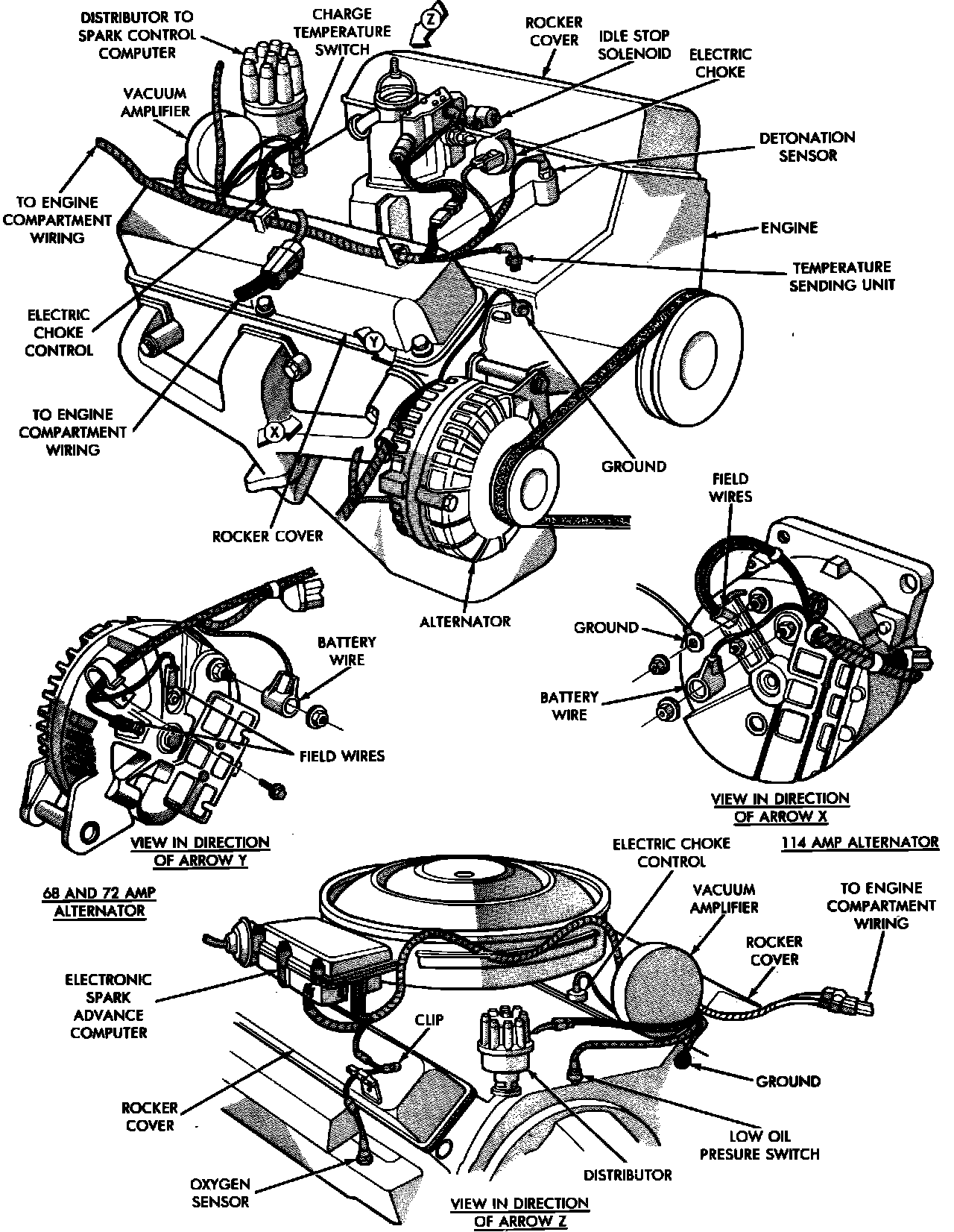 Electronic Feedback Carb. system. Component location. 8 cyl. engine: