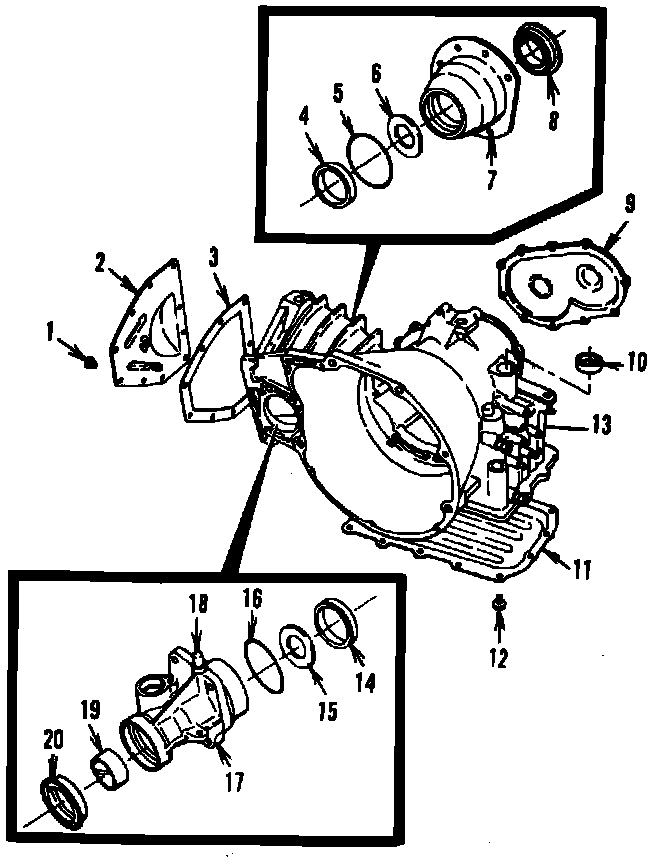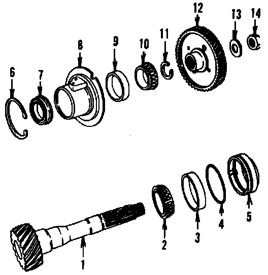 Output Shaft, Rear Carrier, Drum & Clutch, 3 Speed: