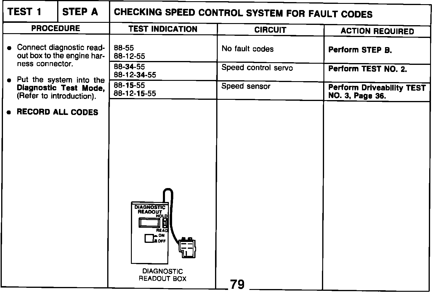 TEST 1 - STEP A - CHECKING SPEED CONTROL SYSTEM FOR FAULT CODES