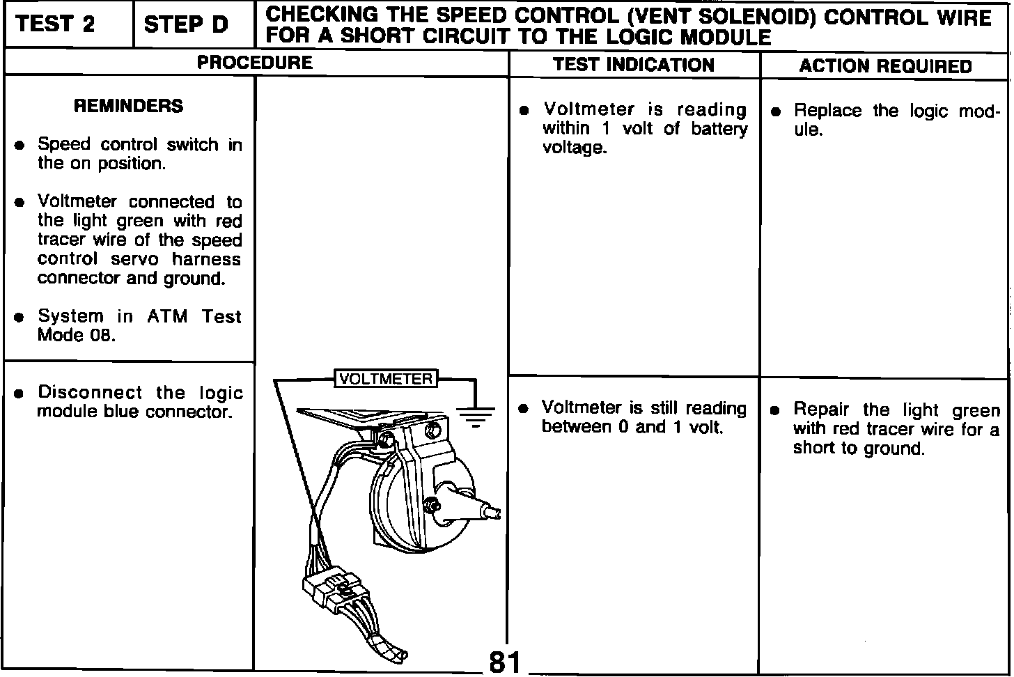 TEST 2 STEP D CHECKING THE SPEED CONTROL (VENT SOLENOID) CONTROL WIRE