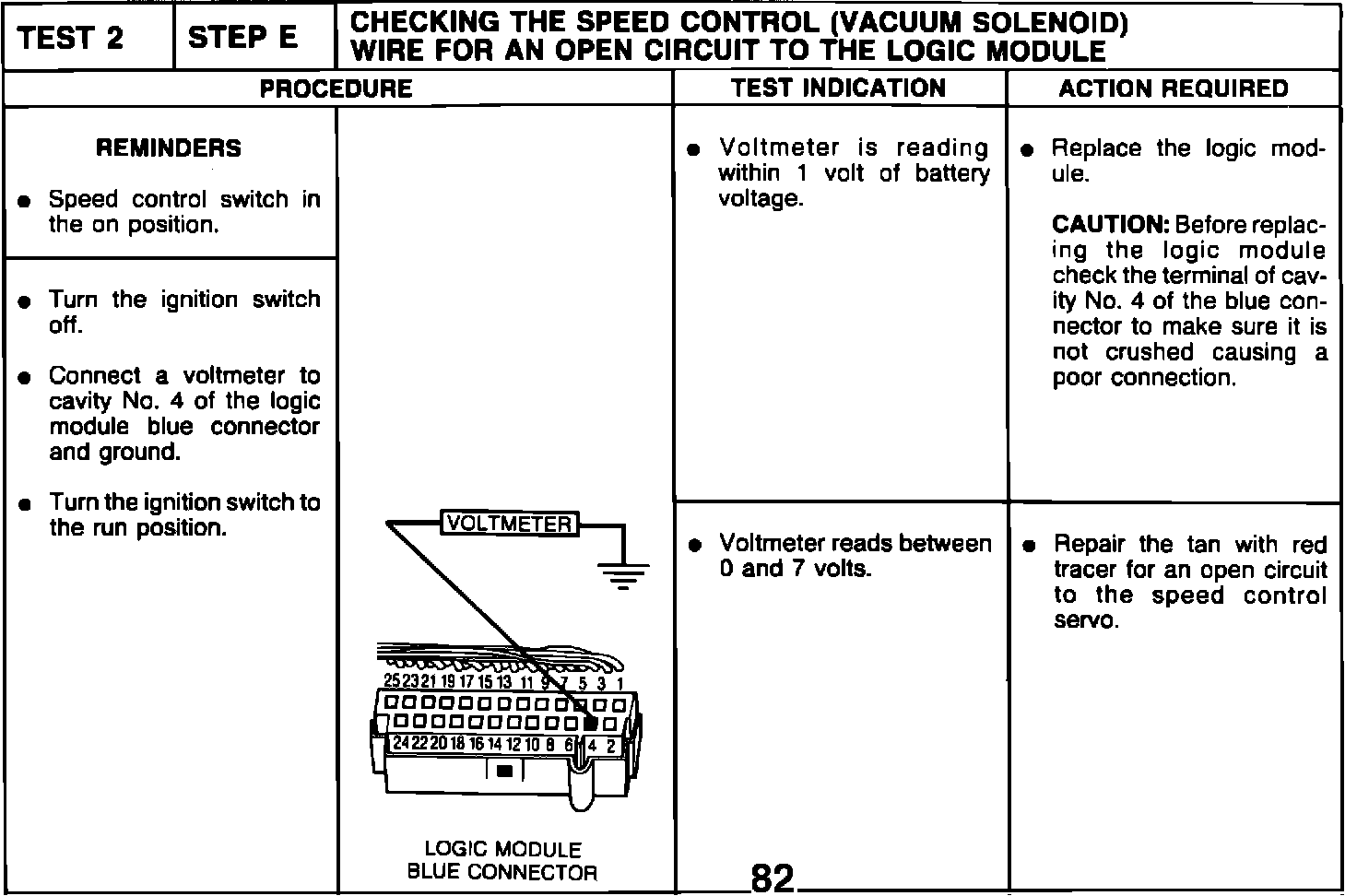 TEST 1 - STEP B - CHECKING SPEED CONTROL SWITCH INPUTS TO THE LOGIC MODULE
