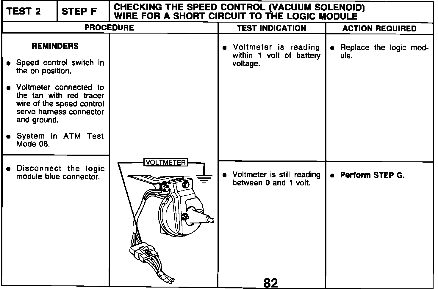 TEST 2 STEP F CHECKING THE SPEED CONTROL (VACUUM SOLENOID)