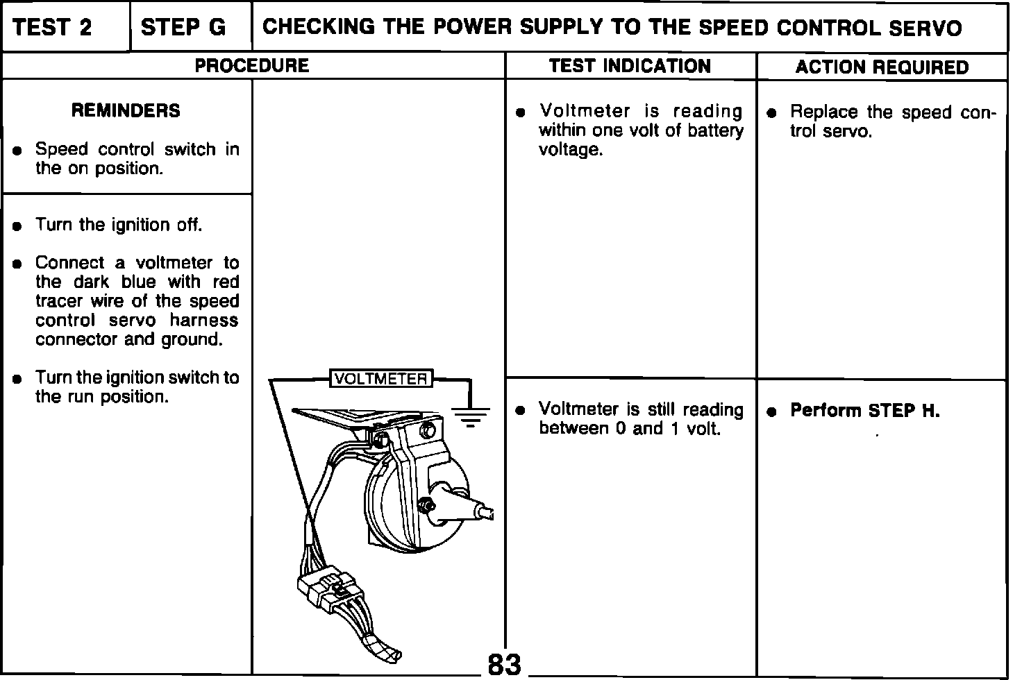 TEST 2 - STEP G - CHECKING THE POWER SUPPLY TO THE SPEED CONTROL SERVO