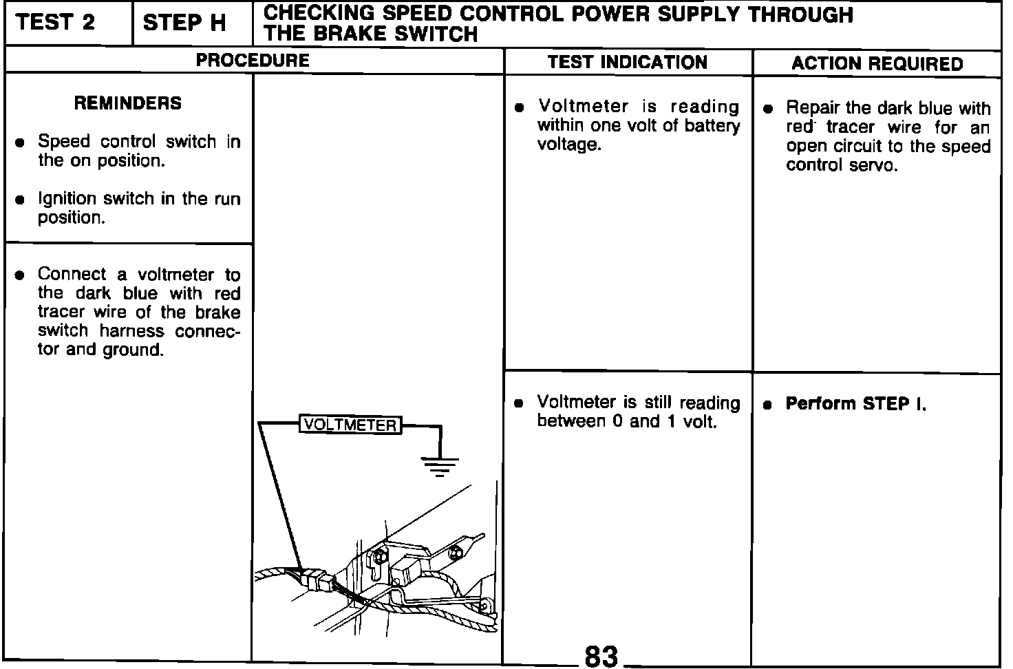 TEST 2 STEP H CHECKING SPEED CONTROL POWER SUPPLY THROUGH