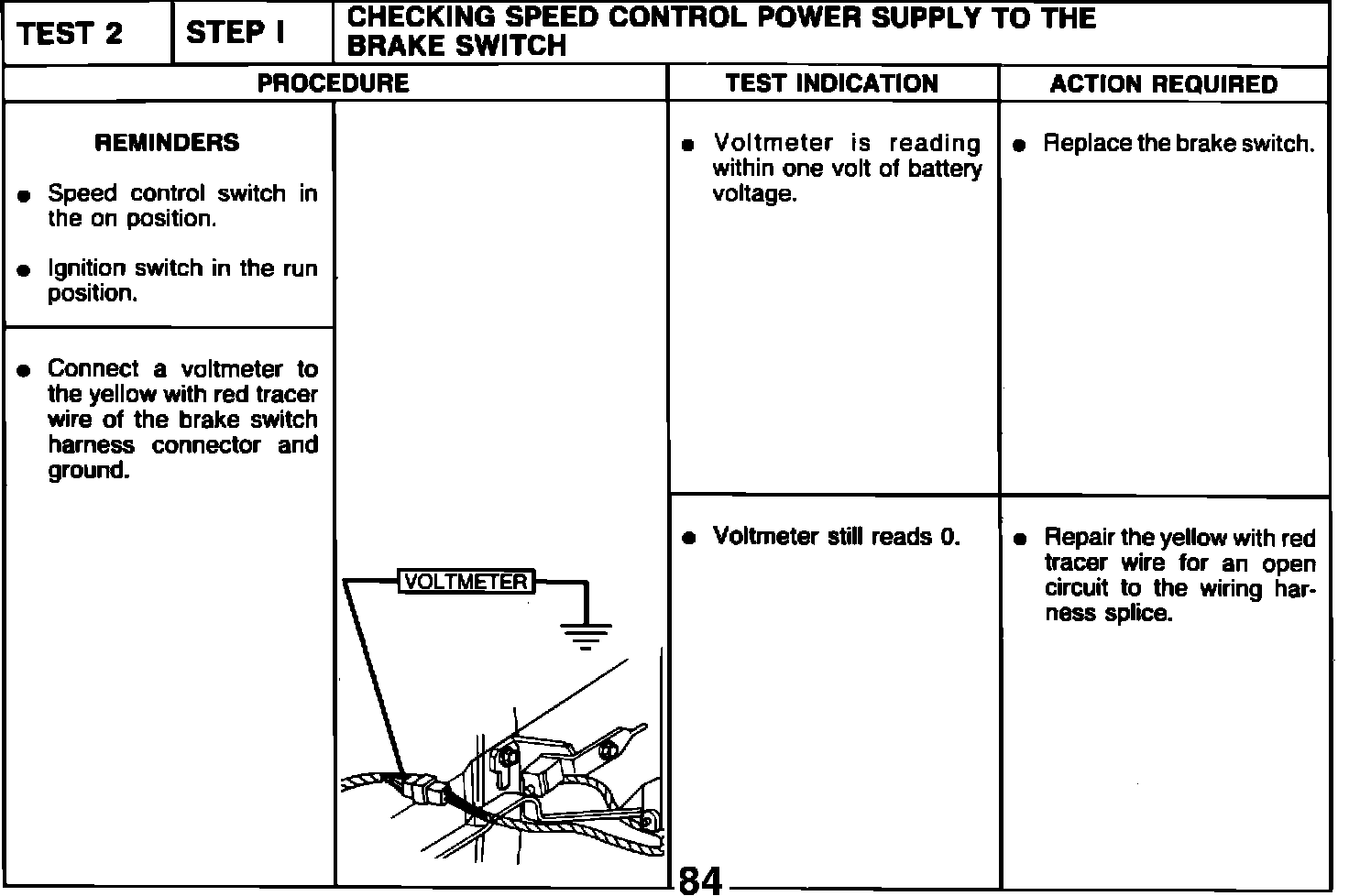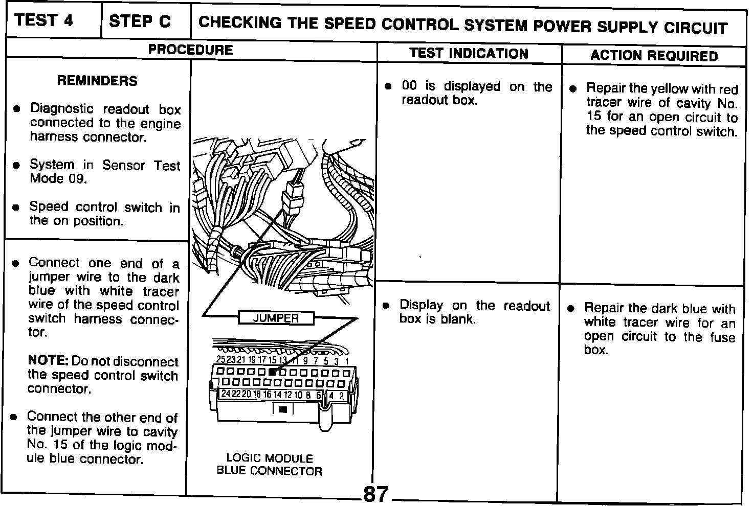 TEST 4 STEP A CHECKING SPEED CONTROL SYSTEM ON/OFF FUNCTION IN THE