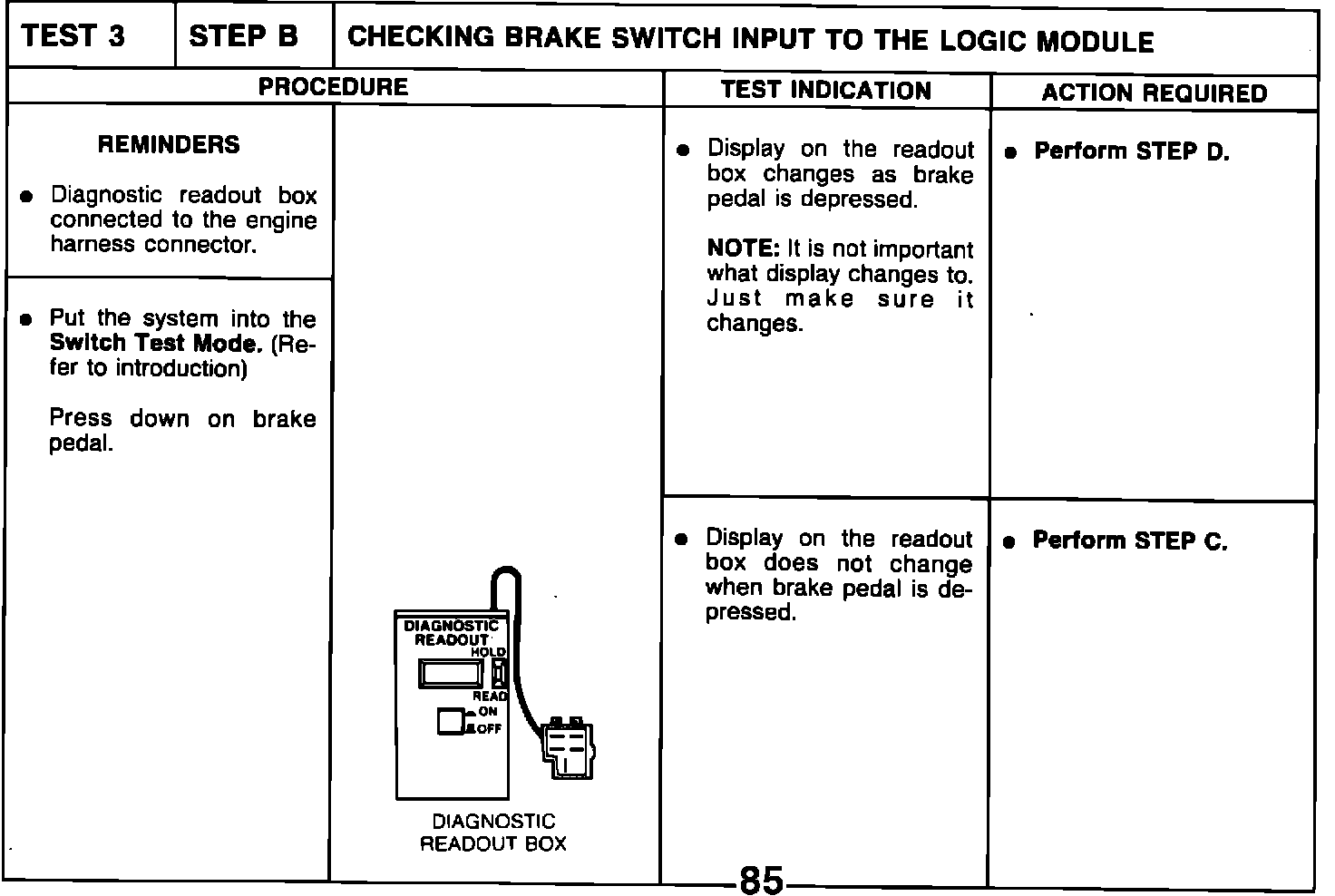 TEST 3 - STEP B - CHECKING BRAKE SWITCH INPUT TO THE LOGIC MODULE