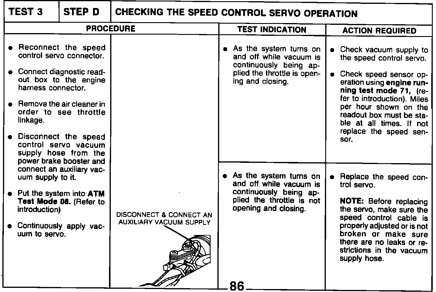 TEST 3 - STEP D - CHECKING THE SPEED CONTROL SERVO OPERATION
