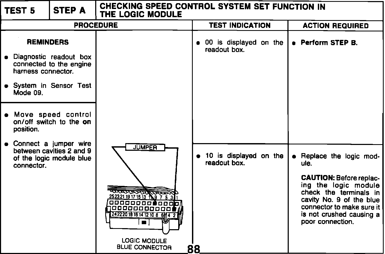 TEST 5 STEP B CHECKING THE SPEED CONTROL SYSTEM SET CIRCUIT
