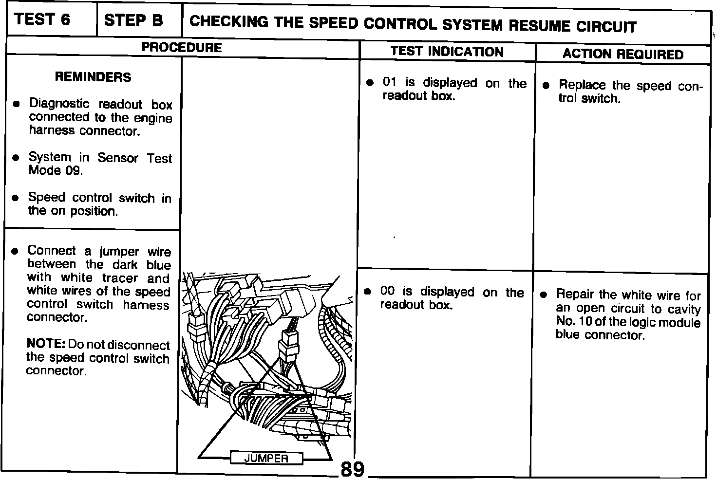 TEST 6 STEP B CHECKING THE SPEED CONTROL SYSTEM RESUME CIRCUIT