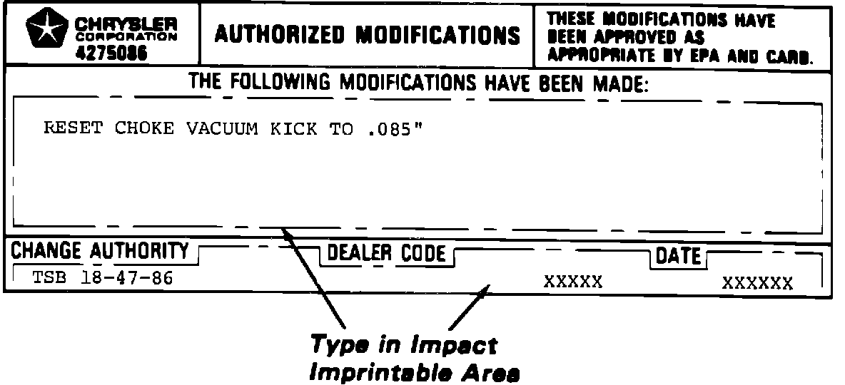 86chrysler4 ModelsLate 1986 & 1987 Passenger Cars Equipped With a 2.2L Engine With Carburetor PN 4324690 or PN 4324691