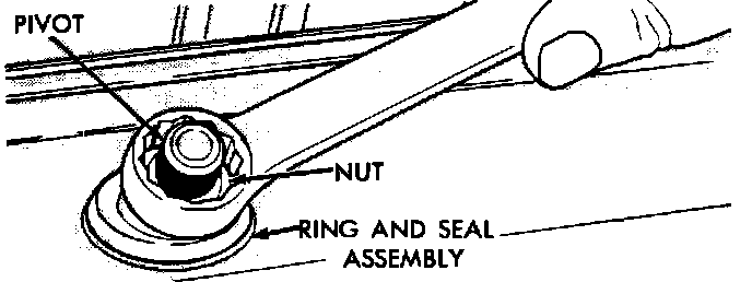 4. Remove nut, ring and seal assembly from pivot shaft.