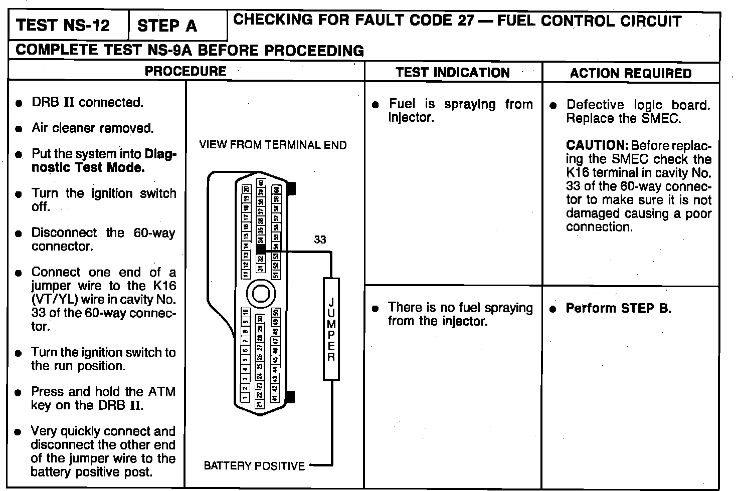NS 12-Step A: Fault Code 27-Fuel Control Circuit: