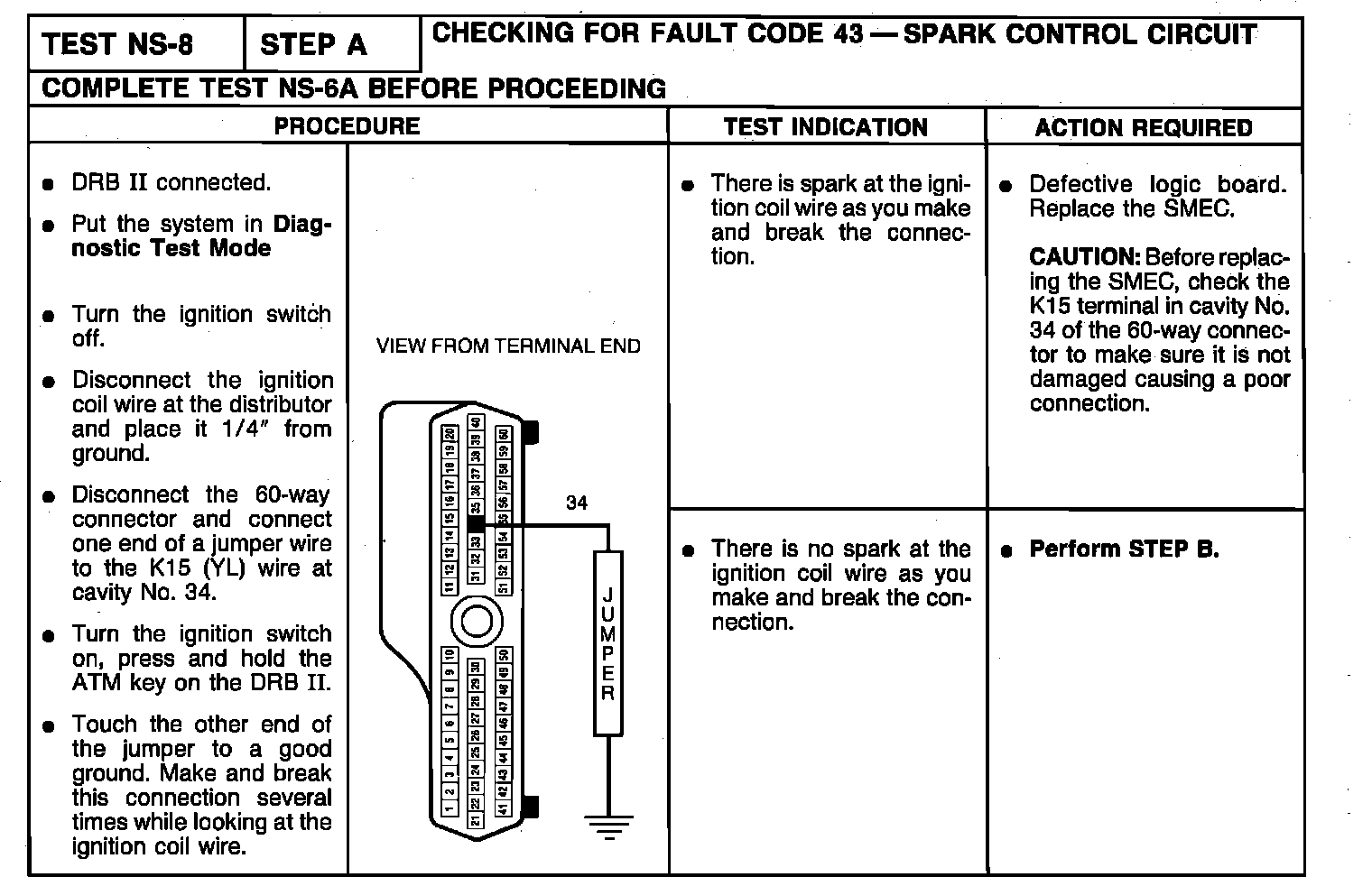 NS 8-Step A: Fault Code 43-Spark Control Circuit: