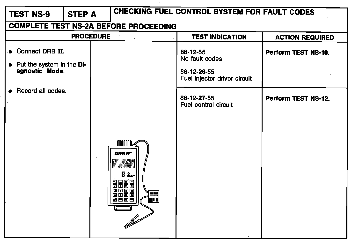 NS 9-Step A: Fuel Control System For Fault Codes: