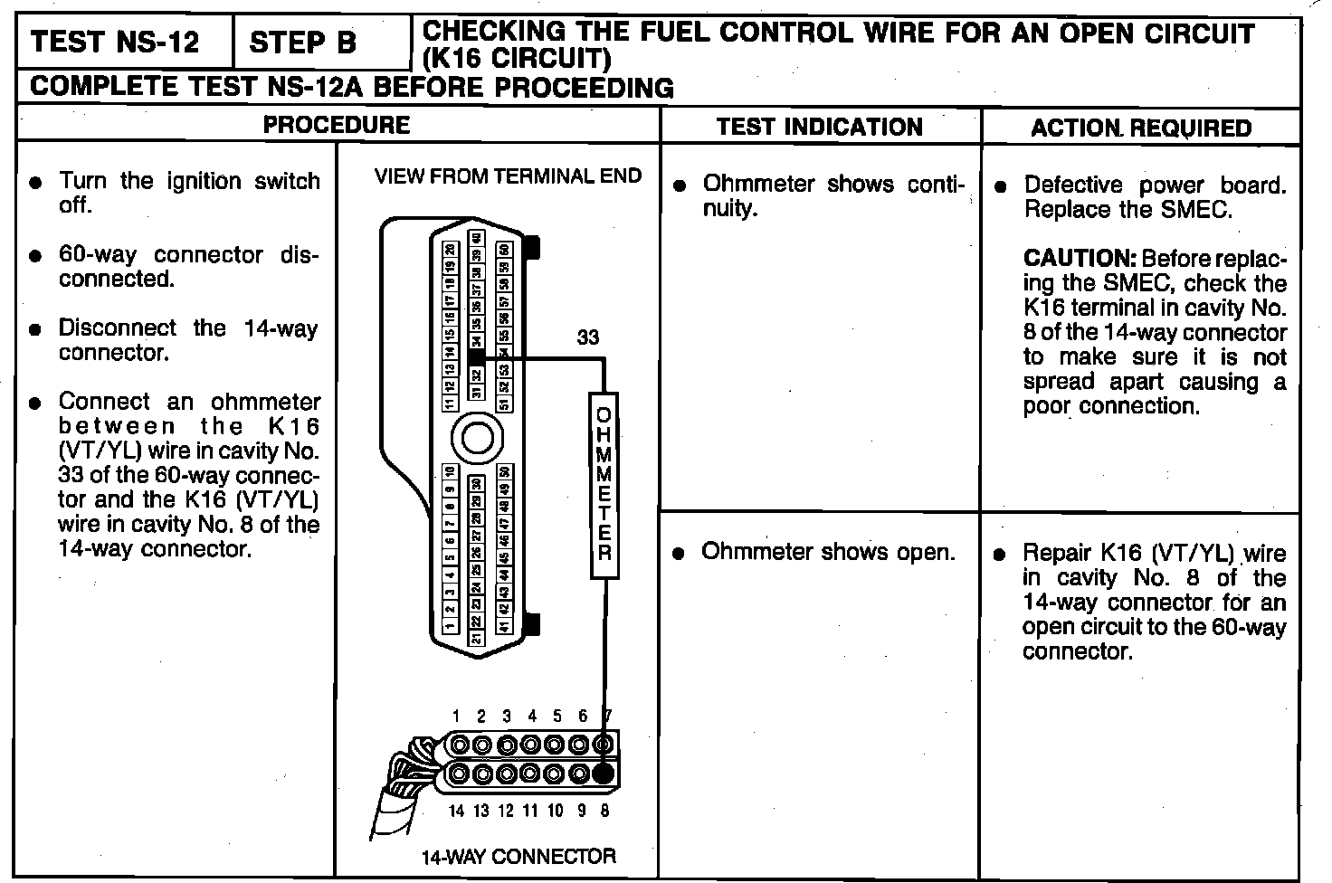 NS-12B Check Fuel Control Wire For Open Circuit (K16)
