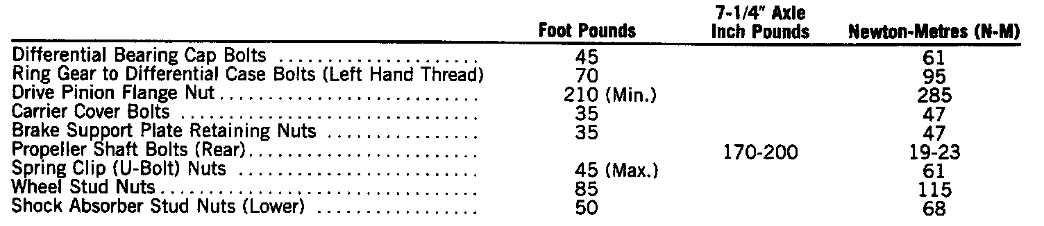 7-1/4" Torque Specifications: