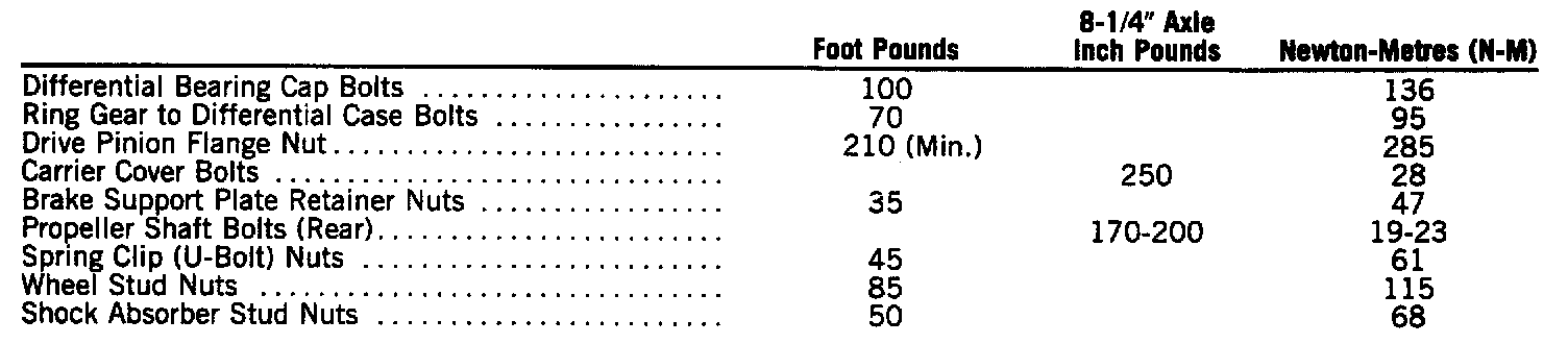 8-1/4" Torque Specifications: