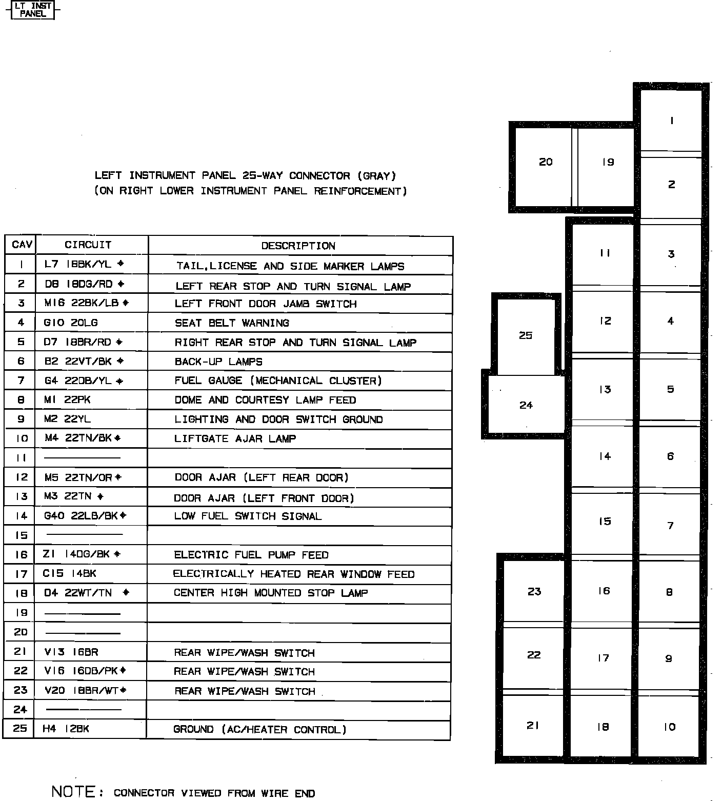 Body To Instrument Panel Connectors, Left Side (Part 1 of 2):