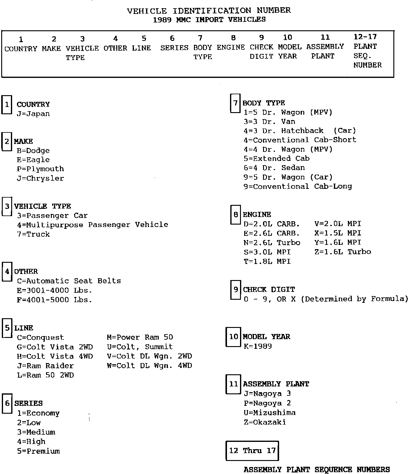 VIN MMC Import Vehicles