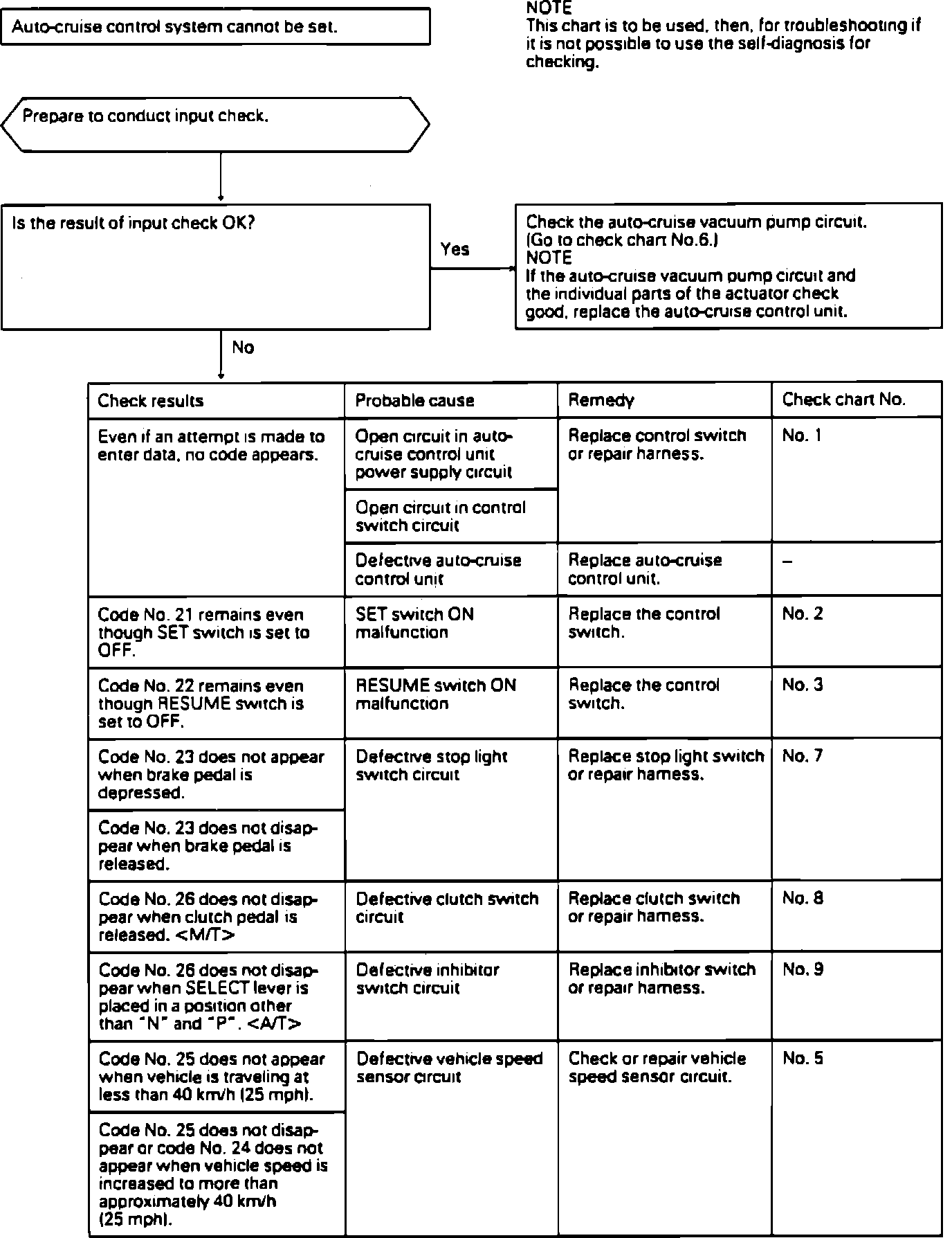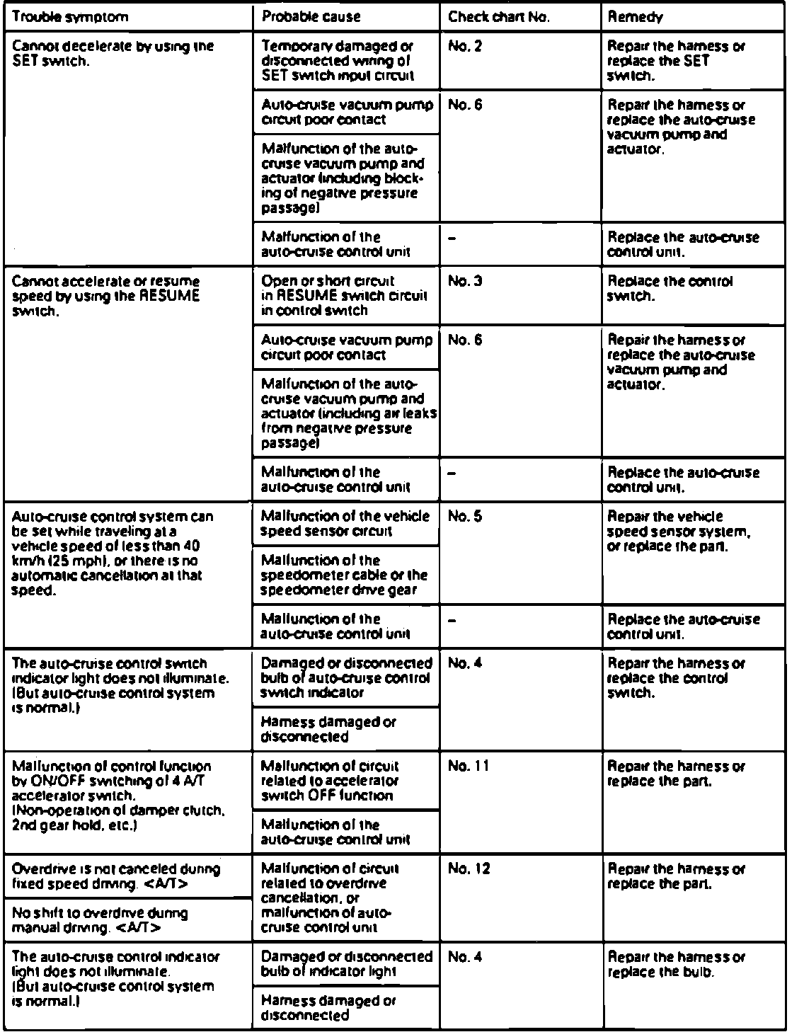 Refer to the appropriate circuit check chart indicated. Refer to Cruise Control/Testing and Inspection/Procedures/Diagnostic Charts.