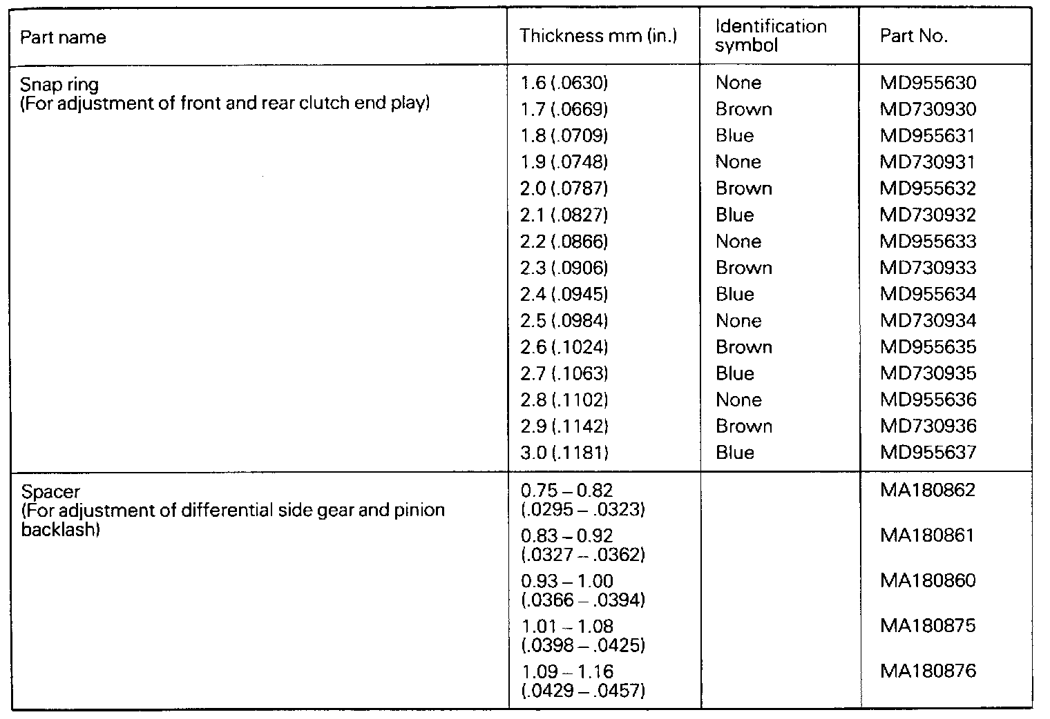 Adjustment Snap Rings And Spacers: