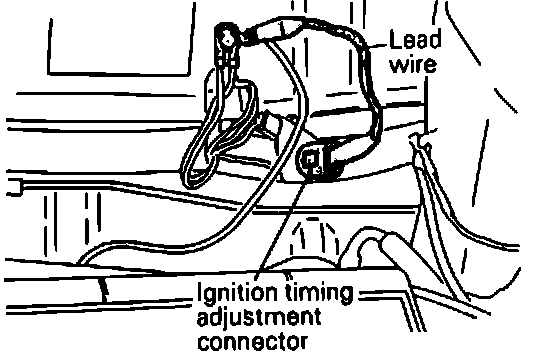 5. STOP the engine, and disconnect the ignition timing adjustment terminal. Using a lead wire with alligator clips, ground the terminal.