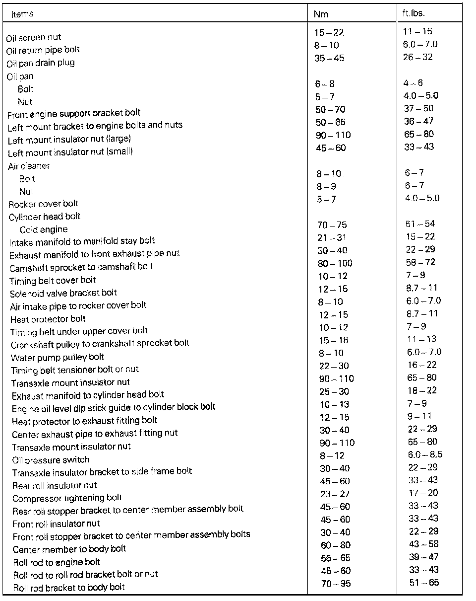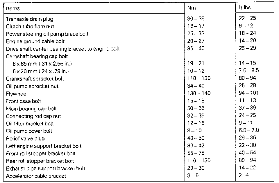 Tightening Specifications