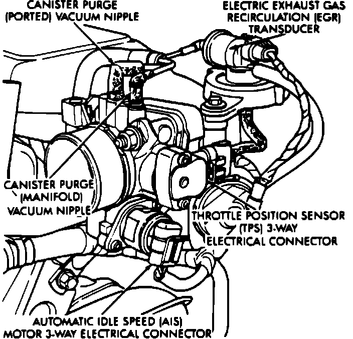 (21) Connect the wiring connectors to the throttle position sensor (TPS) and Automatic Idle Speed (AIS) motor (Fig. 4).