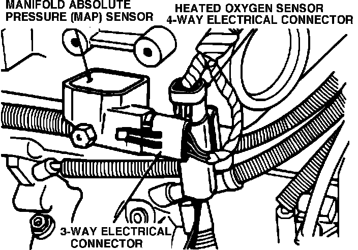 (16) Connect ground strap, MAP and heated oxygen sensor electrical connectors (Fig. 6).