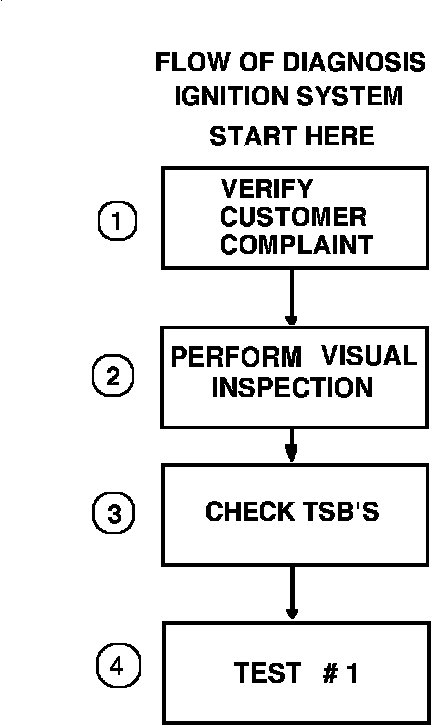 ^ START TESTING with TEST 1 - CHECKING FIRING ORDER this will indicate proper testing sequence. If after performing the procedures the problem still persists, refer to COMPUTERIZED ENGINE CONTROLS/DIAGNOSIS AND TESTING for further testing. The following is a description of the testing procedures.