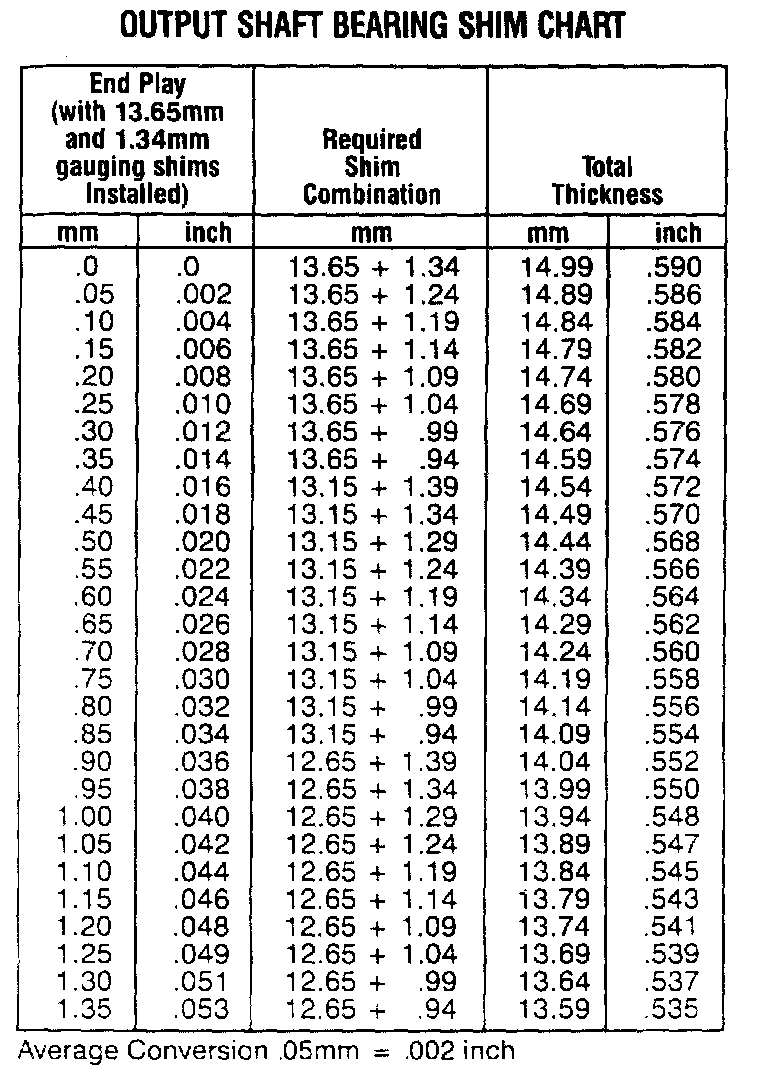 Output Shaft Bearing Shim Chart: