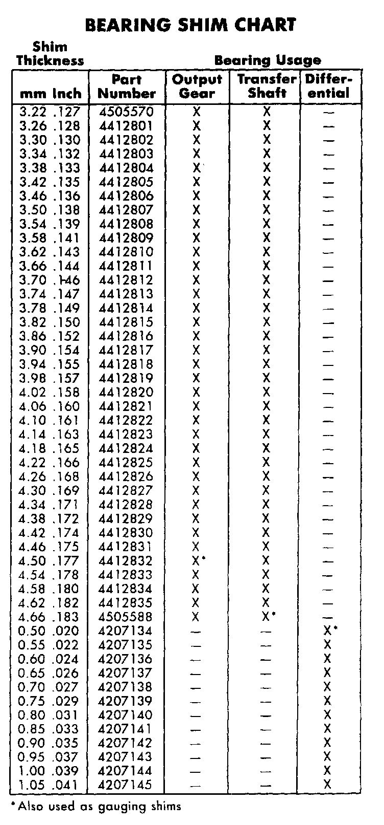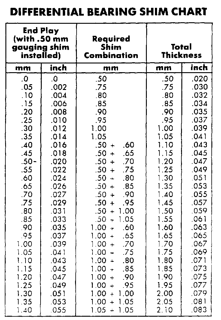 Differential Bearing Shim Chart: