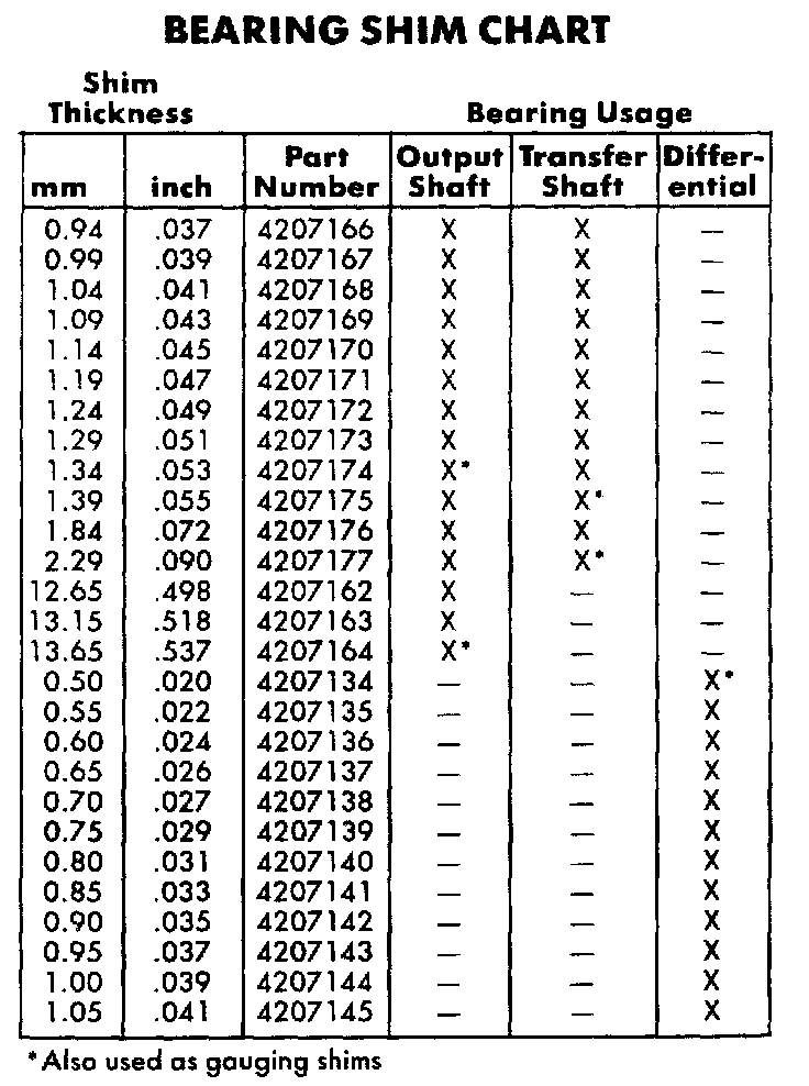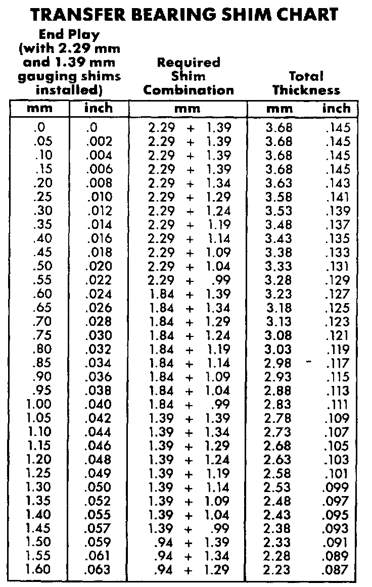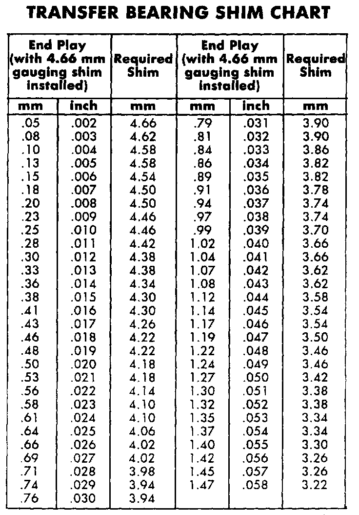 Transfer Bearing Shim Chart:
