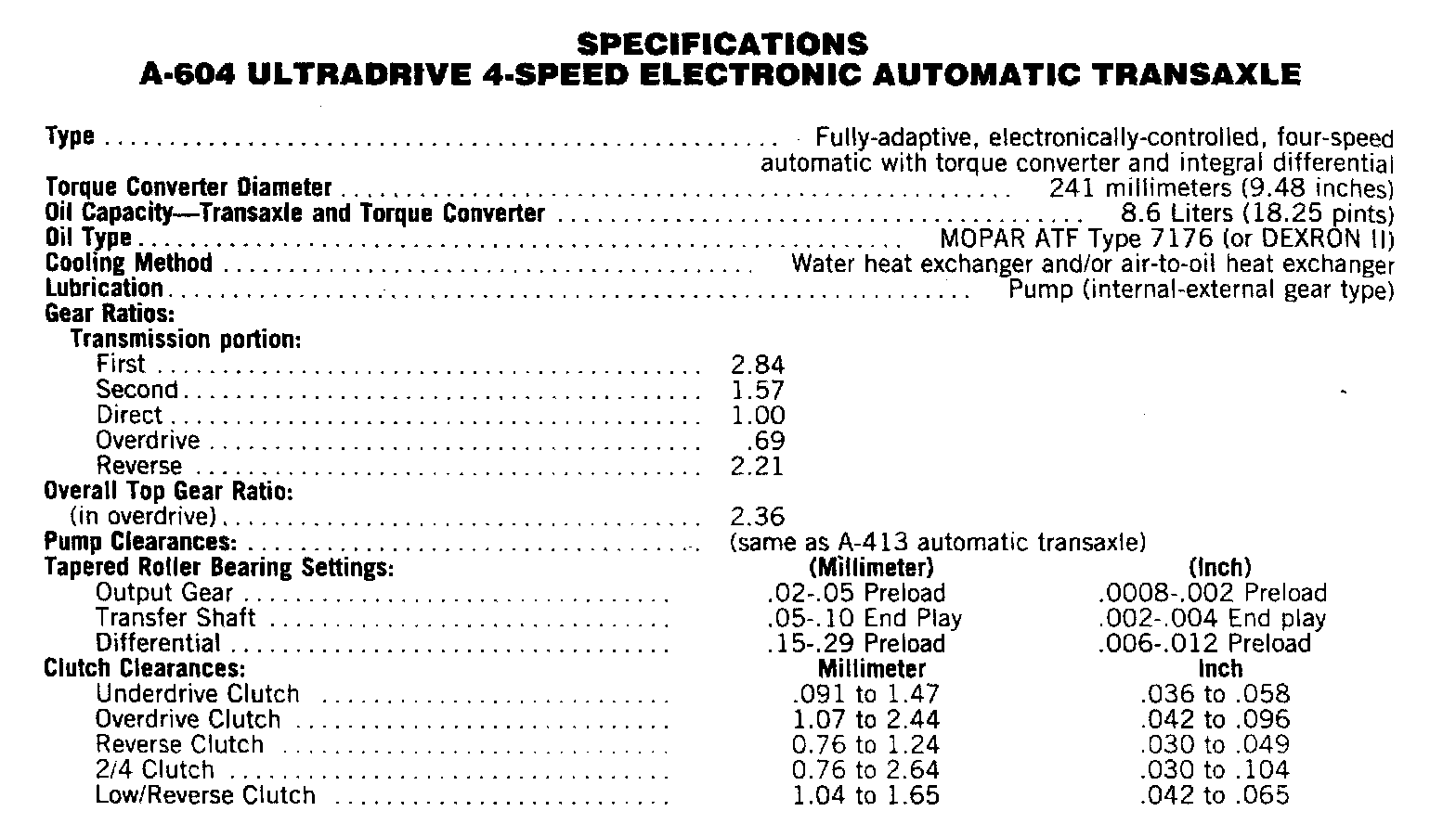 A-604 Ultradrive 4-Speed, Specifications: