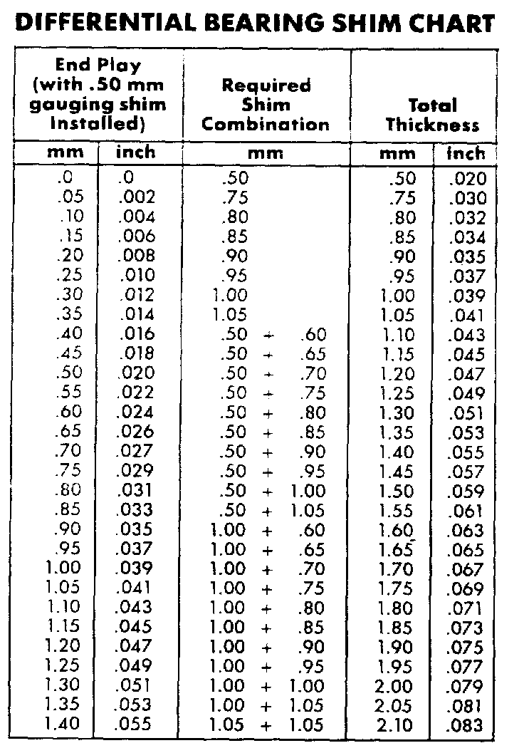 Bearing Shim Chart: