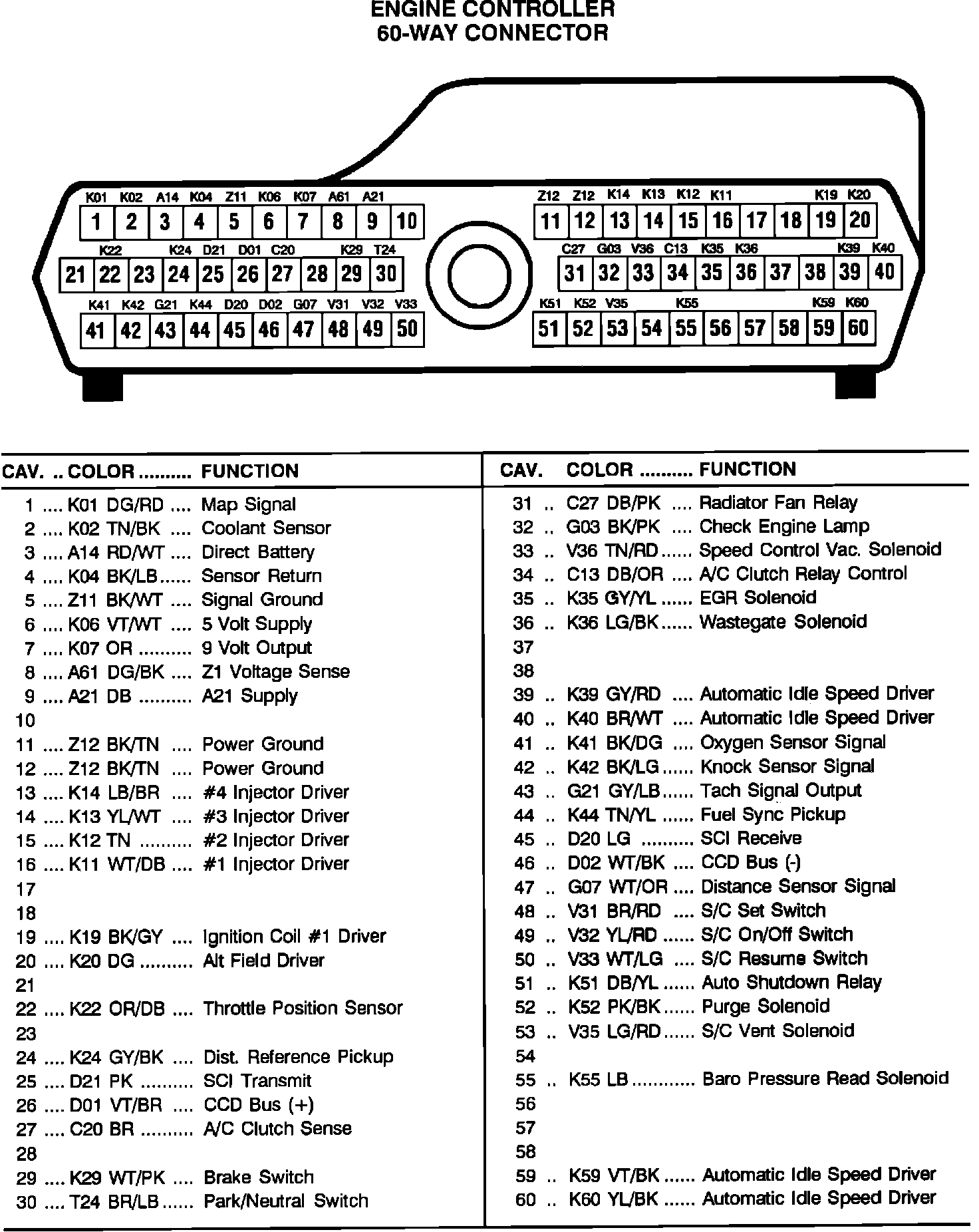 60-Way Single Module Engine Controller Connector (With Turbo):
