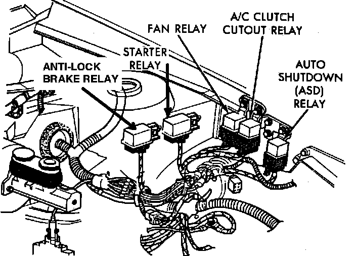The Auto Shut Down (ASD) Relay is located by the left strut tower.