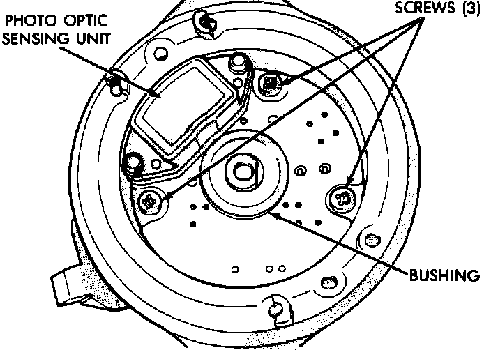 3. Remove bushing and 3 photo optic sensing unit fasteners. Remove unit from distributor housing.