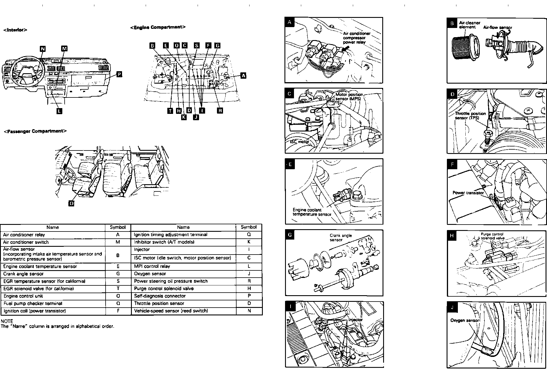 Multi-Point Fuel Injection Components, Components A Through J.: