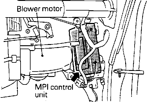 1. Check for an output signal from the MPI controller to the power transistor by connecting the positive lead of a high impedance voltmeter to terminal 54 of the MPI connector (C-23) and the negative lead to a good ground. There should be a fluctuating voltage signal when the engine is cranked or running.