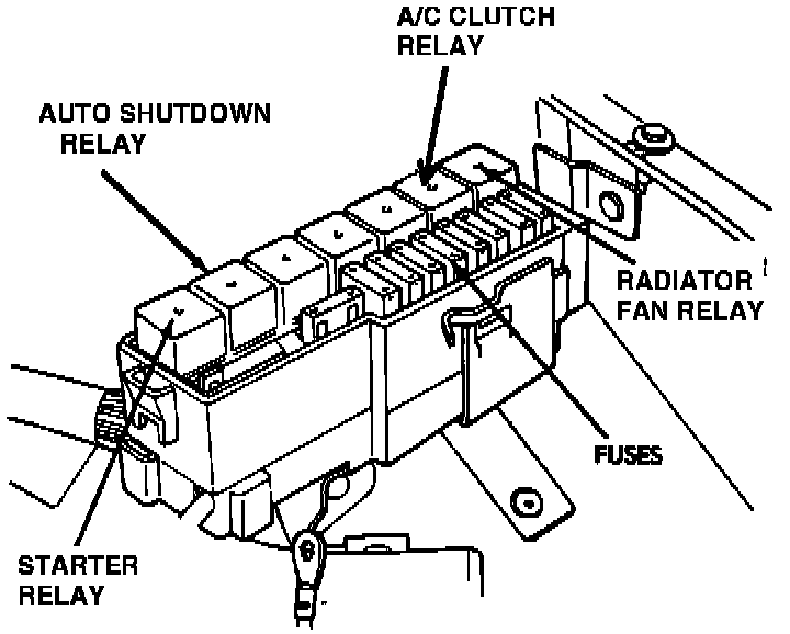 Relay mounted under hood, in Power Distribution Center (PDC), near battery.