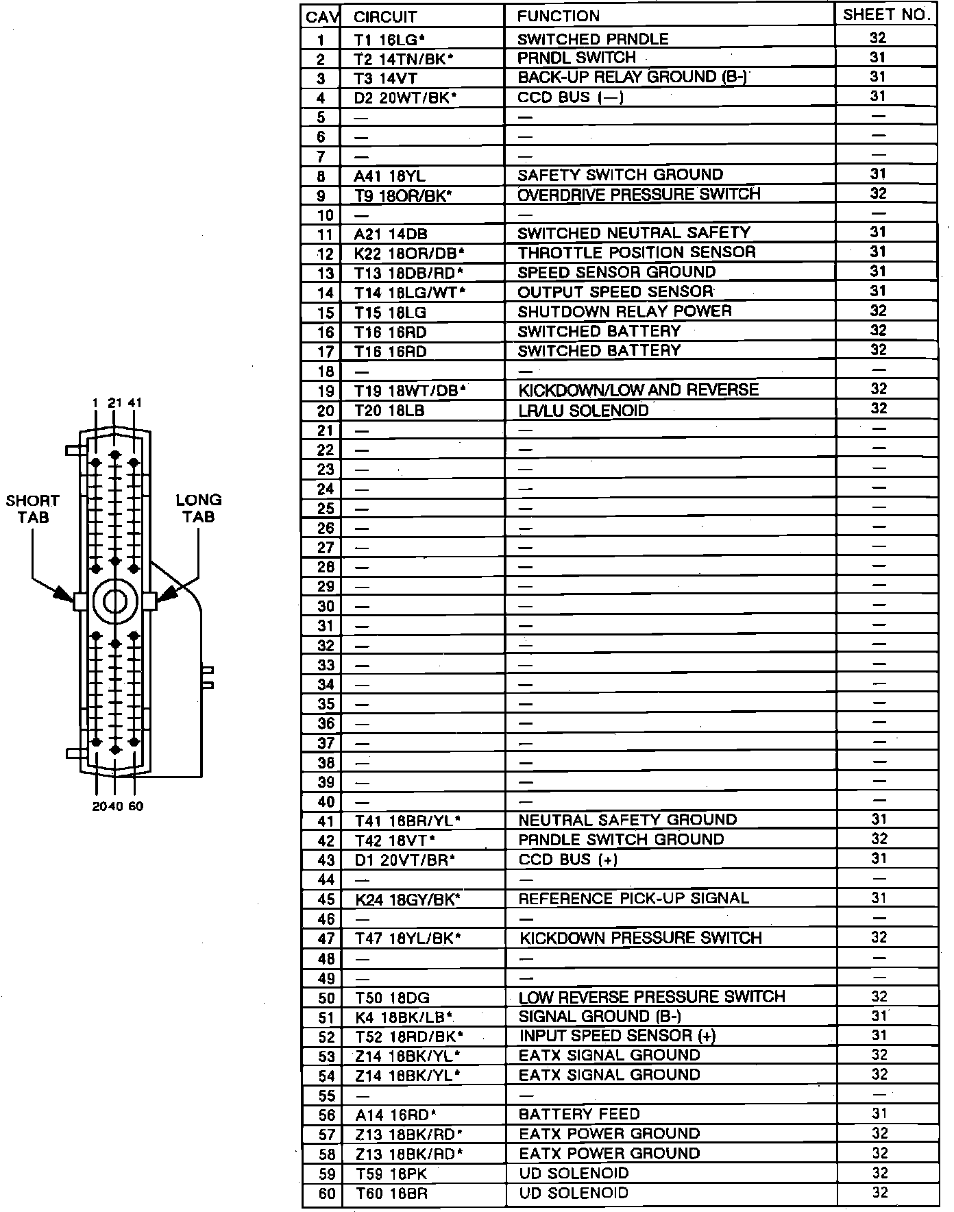 Electronic Automatic Transmission Controller Connector: