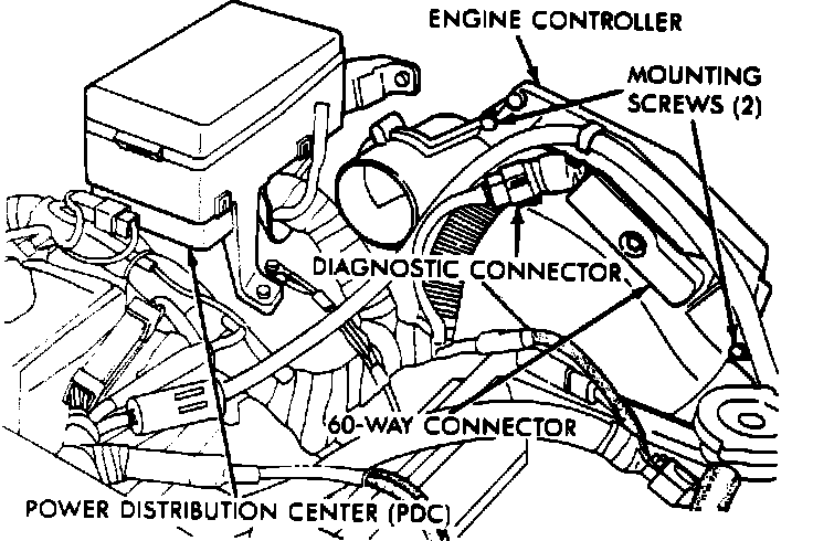 1. Connect the scan tool to the diagnostic connector located in the engine compartment near the Single Board Engine Controller (SBEC).