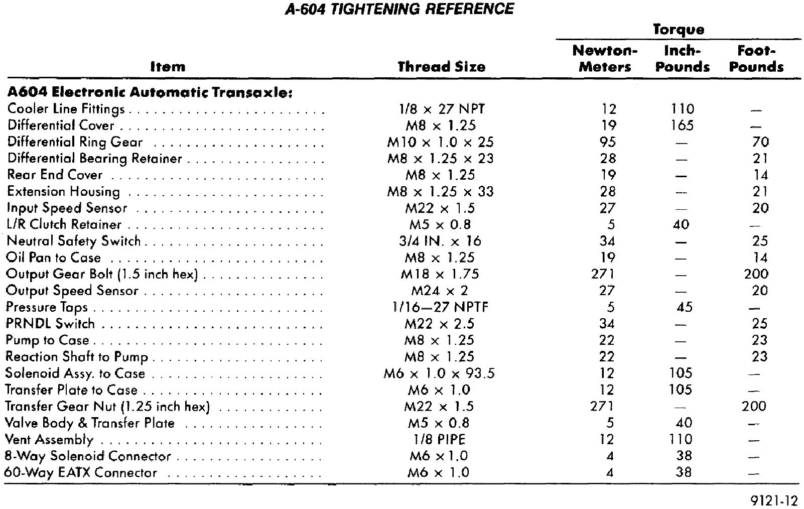 Torque Specifications