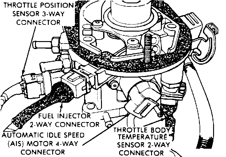 9. Check the throttle body to main harness connector for proper condition and connections.