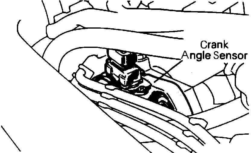 7. If timing is not within specification, loosen the crank angle sensor mounting nut and adjust by turning the sensors housing, then tighten the nut being careful that the crank angle sensor does not move. Recheck ignition timing.