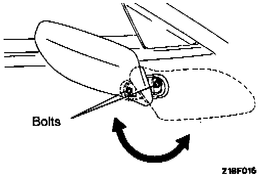 Tilt the door mirror backward and forward to remove the attaching bolts.