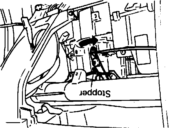 c. Place air selection lever in recirculation position, then set air selection damper lever as it contacts stopper as shown connect air selection control wire to lever and secure outer cable using clip.