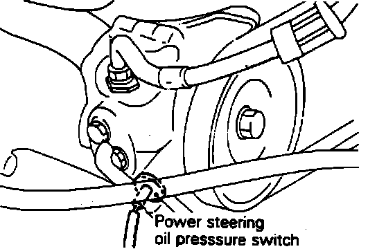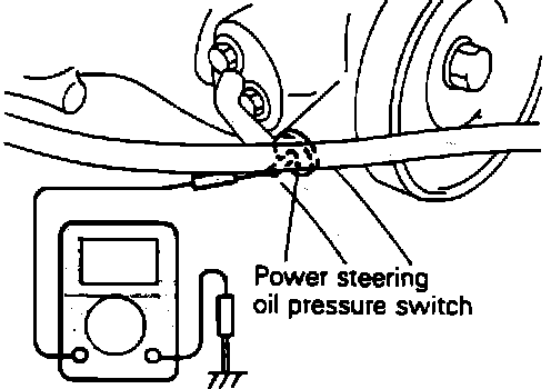 4. With the steering wheel in a turned position, check for continuity between the pressure switch terminal and body ground. There should be continuity.
