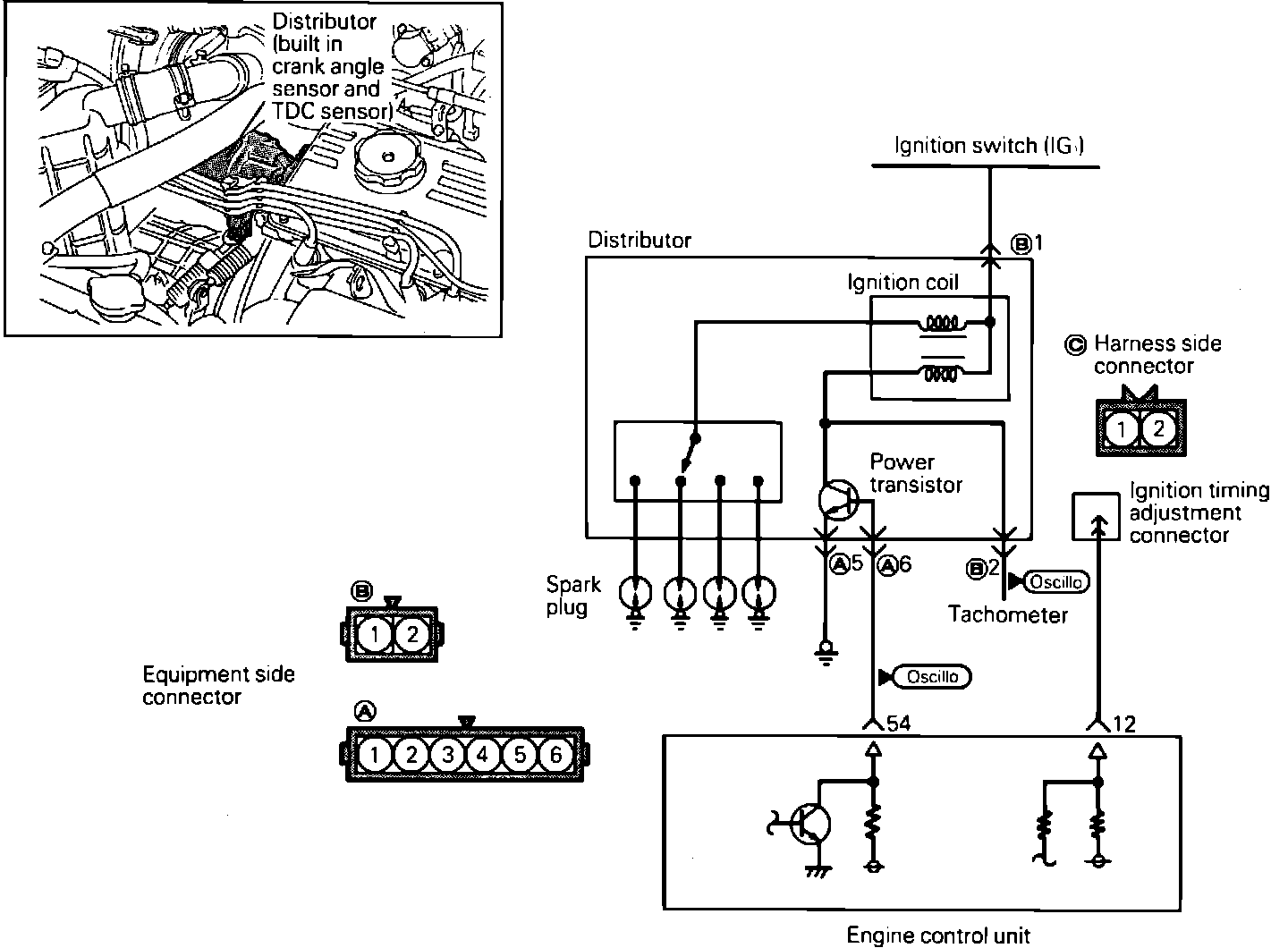 The ECU controls ignition timing through the power transistor. The power transistor is a type of switch that allows a very low voltage (from the ECU) to control a larger amount of voltage (negative side of coil). During engine cranking, the ignition timing is fixed at 5°BTDC